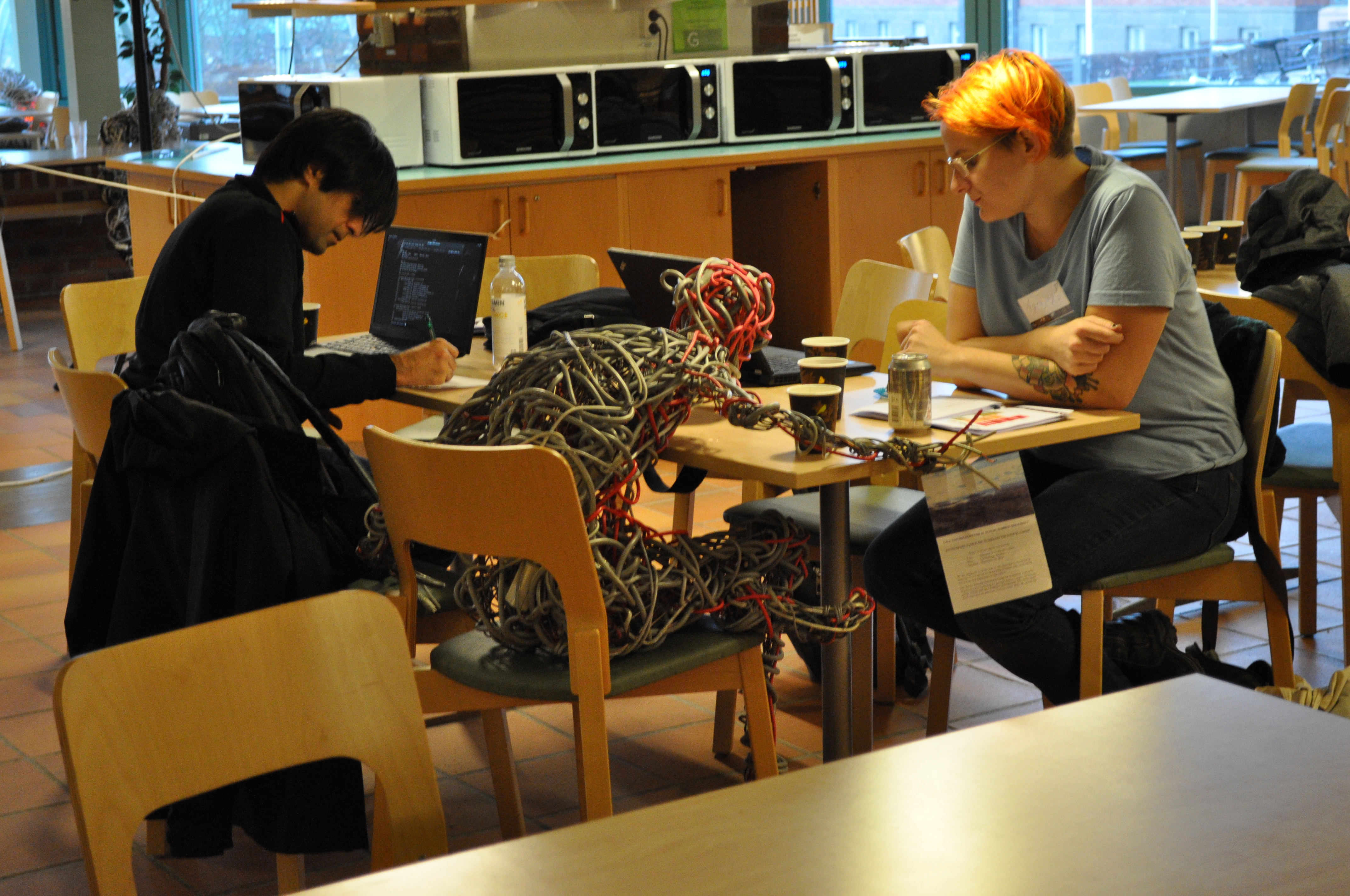 Några FSCONS-deltagare tar vara på en paus mellan föredragen.